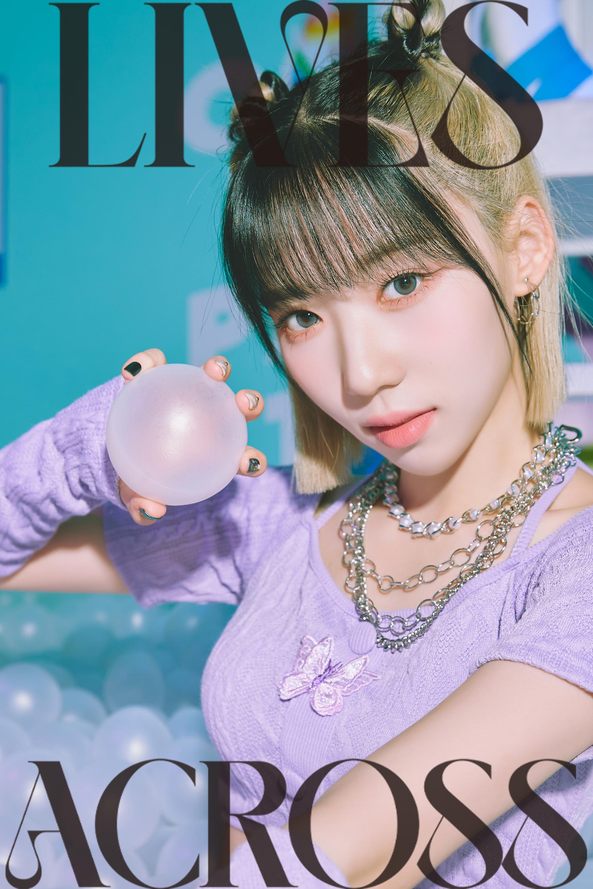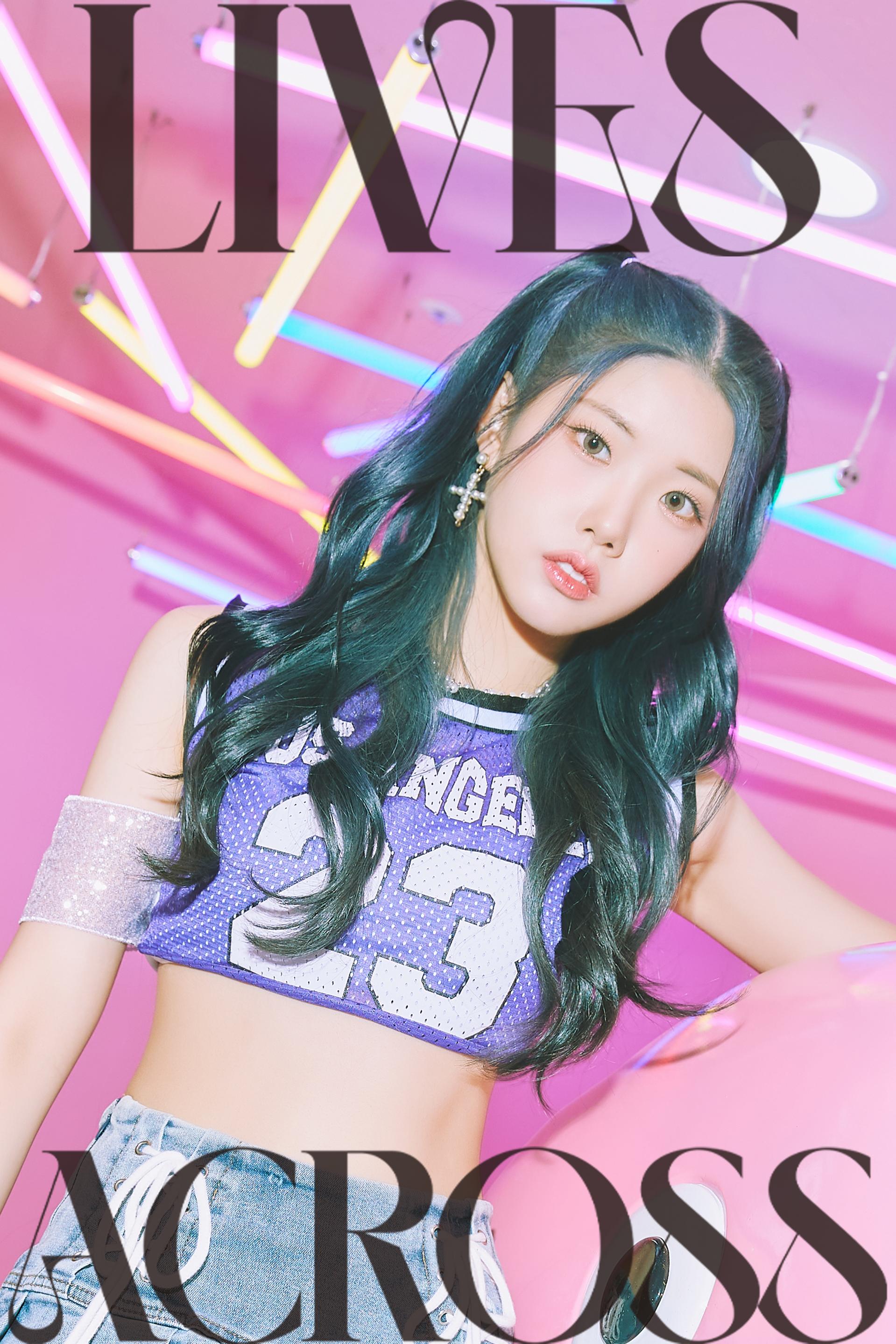 리더 홍혜주는 유니크한 패션 화보의 주인공이었다. 청순한 연보라색 상의에 화려한 레이어드 목걸이로 반전 매력을 보여줬다. 독특한 블랙&골드 컬러의 단발 머리에 청순한 메이크업으로 유니크한 러블리룩을 완성했다.